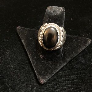 Sterling silver and black onyx men’s ring. This has been worn and came from my fathers collection.