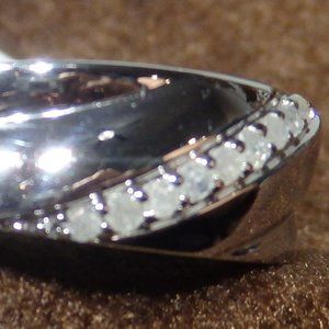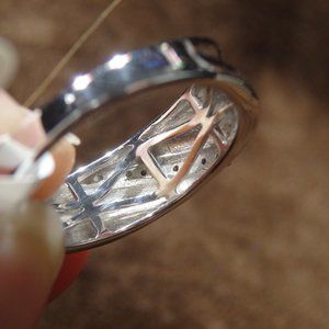 Real Diamond ring mined .925 sterling silver rhodium coated. Very durable. made for everyday use. Still nice enough for a wedding band. Real Diamonds have a clarity to them and have the holes in the back to help catch the light.