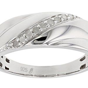 0.15ctw round white diamond, rhodium over sterling silver mens band ring.