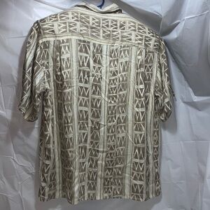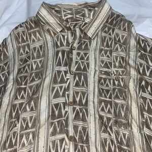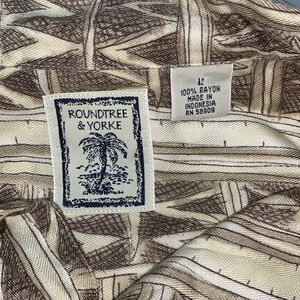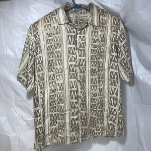 Men’s roundtree & yorke short sleeve button down cream & brown pattern shirt L