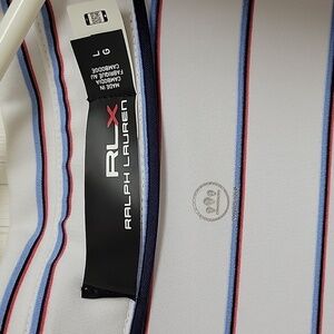 men's short sleeve RLX Ralph Lauren performance polo sz large, striped 92% polyester, 8% elastane, 48" chest