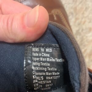 Men’s size 10 boots. Visible signs of wear on bottom heel of boots