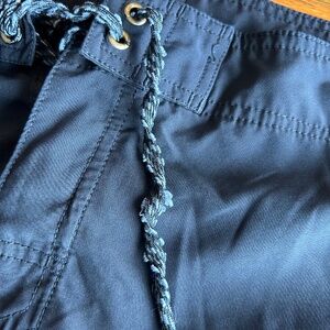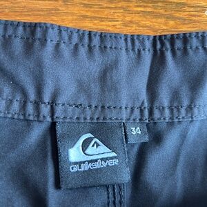 Men’s Quicksilver boards shorts size 34. Small paint stain on back and waist tie is fraying and band in string has fallen off (see photos). Owned by a non smoker inseam measures 9 1/4”