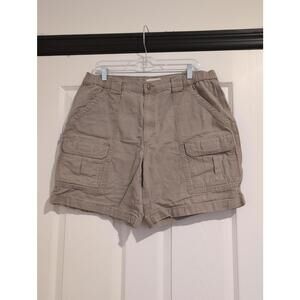 Tan khaki cargo shorts. 100% cotton. Savane brand. Inseam is 7.5 inches