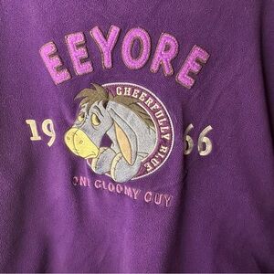 Cozy purple sweatshirt featuring Eeyore graphic. Perfect for casual wear.