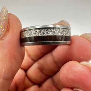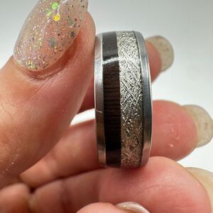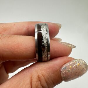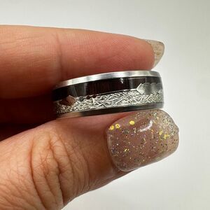 Men's size 12.5 silver with resin/high polish scroll design, wood/ arrow ring!