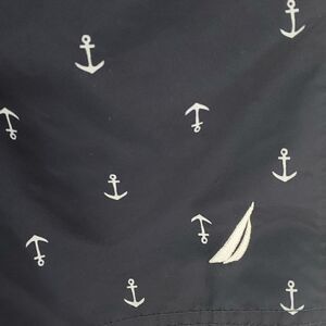 Just in time for summer. Navy blue trunks with anchors. Side pockets and a small inside pocket. Elastic waist with tie. White mesh linned. Good used condition and quality. Consider making a bundle and get an even better offer.