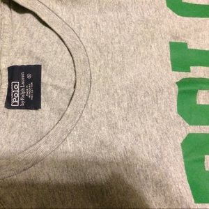 Men's Small, gray Polo by Ralph Lauren Tee with capital kelly green letters on the front saying 'POLO.' Not one tear, stain, or problem with the garment whatsoever. Feel free to ask questions!