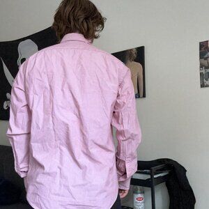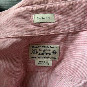 In great condition, just needs a quick iron. Red/pink color and likely a mens medium although I can't tell exactly with the tag. Model is 5'5.