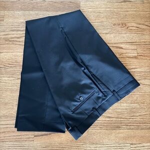 Men’s suit with coat and pants. Brand new never worn. Coat size 44. Pants size 36W X 32L. Black color. No stains or rips. No pets or smell. Bought from Macy’s.