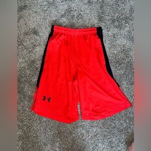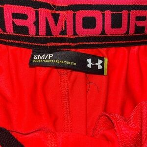Small under armour men’s shorts. Bright red/orange color. In good condition with a few flaws that can be seen in the pictures.