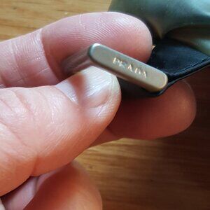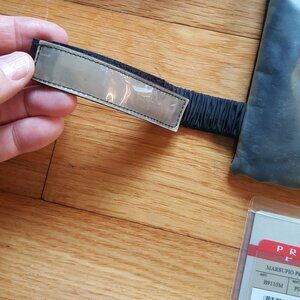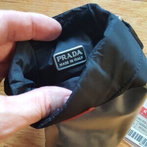 Prada bag-From the Spring 1999 collection, an awesome vintage Prada compact bag for everyday outings... or the club? Signature nylon, clear latex velcro closure front pocket, velcro closure main pocket, 2 adjustable patent leather reflective velcro straps with brass buckles. Buckles can be polished up with a little love but this bag is still edgy and functional. Incredibly rare and incredibly fucking cool! Made in Italy one size. Original authenticity card, storage bag and box included.