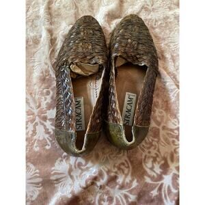 Men’s vintage 80s leather woven stracam brown loafers 8.5