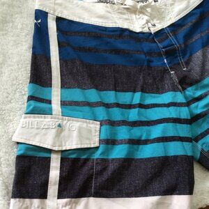 Men's vintage Billabong board shorts recycler zero gravity platinum stretch multi color. Drawstring waist with side pocket. Polyester/spandex blend. Size 33