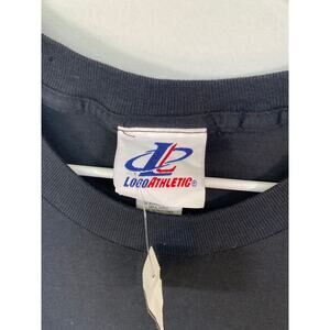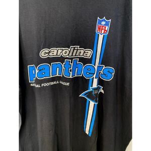 Men’s vintage Carolina Panthers t-shirt. Size 2 XL. BLACK with blue and metallic gray lettering. It also features the NFL logo and the Carolina Panthers logo
