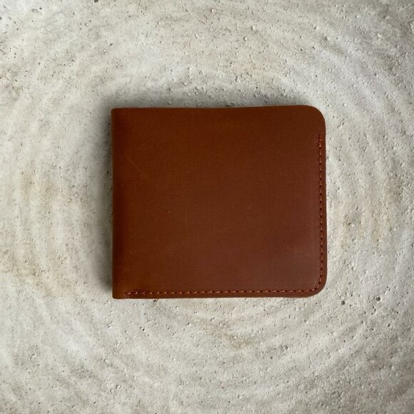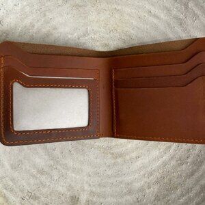 Auburn, crazy horse leather,bill holder,ID window,5 card holder 10.6cmx9.6cm, classy but rugged. Engraving available