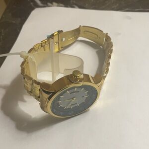 Men’s Gold watch stainless steel back and water resistant. Was work fine