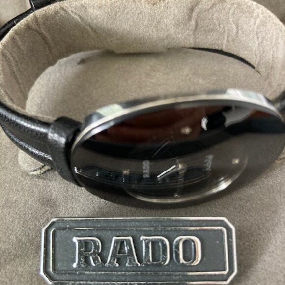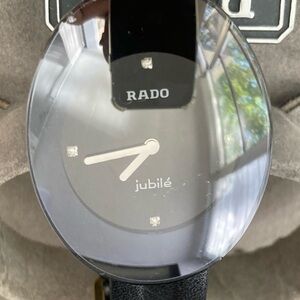 Vintage Rado Unisex Watch -Sapphire Crystal - Black with 4 Diamonds on clock face - La Couple Jubilee. Quarz. Used, has small marks on sides and back.