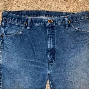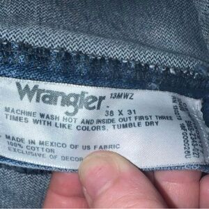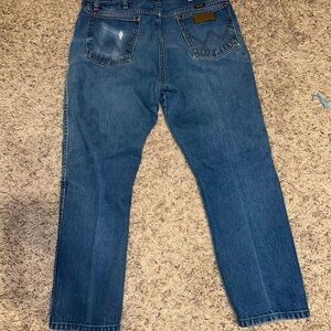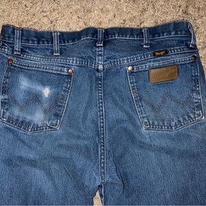 Mens wrangler jeans sz 38 by 31 good used condition worn wallet on back pocket
