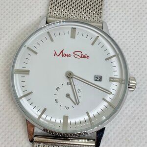 Men’s wrist watch 40mm small seconds date 30MWR silver tone Marc stoic Quartz small seconds date , adjustable mesh band like new condition battery installed