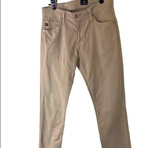 Gently used Adriano Goldschmied Modern Slim Tellis cut, straight leg, 5 pocket, tan pants. They are 97% cotton and 3% elastic, size 30” waist, and 32” inseam.