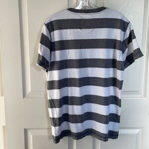 Mens Aēropostale V-Neck Gray & White Stripe Tee, L