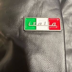 Really cool jacket. No information tag so not sure if genuine leather. No flaws. Weights a little over 3lbs.