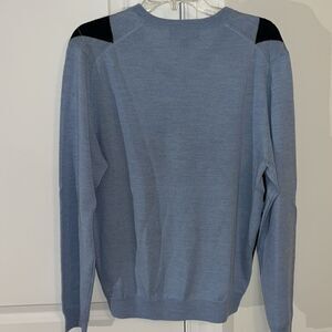 Mens Beautiful Argyle Diamond Merino Wool LS V-Neck Sweater M UNC Carolina BLUE