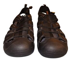 Experience ultimate comfort and durability with these black outdoor adventure sandals. Perfect for any journey.