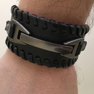 Choose either Black or Brown Leather Bracelet. Belt Buckle Adjustable Closure.