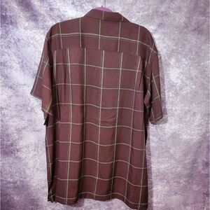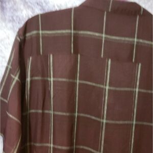 Mens 2XL Short Sleeve, collared, button down shirt. Marron with gray checkered stripes. NWT