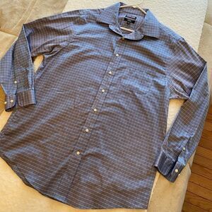 17 34-35, measurements in photos. Great condition. Classic mens button down shirt, perfect for work, everyday, night, etc. All seasons. This is a closet staple! Kirklands signature brand. Tailored fit. Great deal! Better better deals when you bundle! Lots of other similar shirts in my closet— make me an offer!