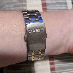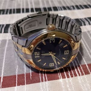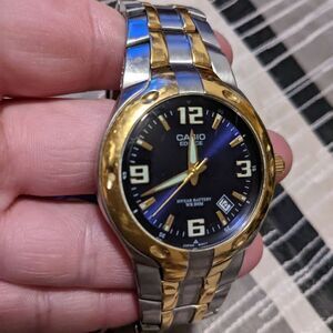 Men's Casio Edifice stainless gold and silver stainless steel watch with a large round blue face, excellent condition