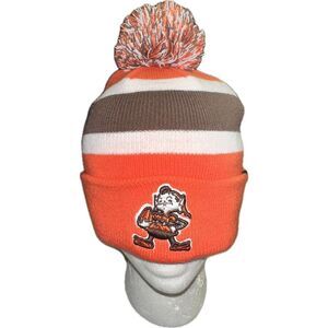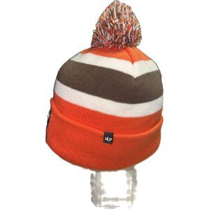 Men's Cleveland Browns New Era Orange Basic Striped Cuffed Knit Hat OSFA Pom