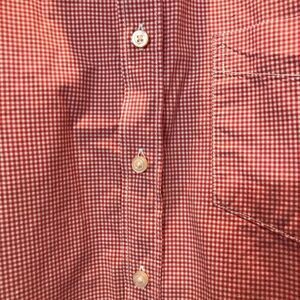 Men’s red and white plaid dress shirt. Excellent condition. Men’s size XL