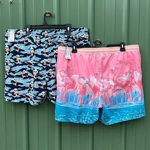 Men's Elastic Waist Swim Trunks Shorts 6" Inseam Beach Vacation 2-Pack Size 2XL