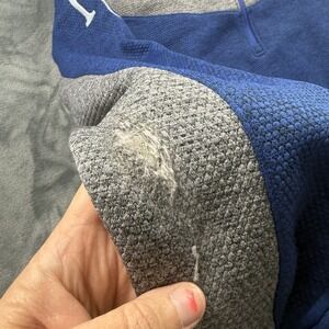 New with tags it does unfortunately have the damage on the sleeve so although it was never used selling as used since there is damage. Otherwise great so cute and will keep you warm. Very cute.