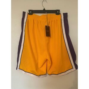 These 2009/10 Hardwood Classics Swingman basketball shorts by Mitchell & Ness are the perfect casual bottoms. A vintage Los Angeles Lakers design gives your fan gear a retro touch. Mesh fabric promotes breathability.