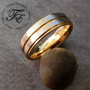 The outer band has brushed steel with a gold-filled douvle grooves and gold step edges.