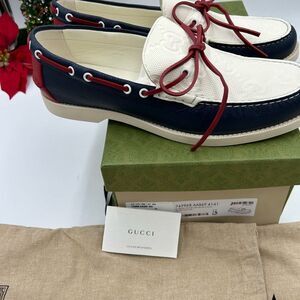 Men’s Gucc calf Leather GG embossed boat shoes size 12 made in Italy