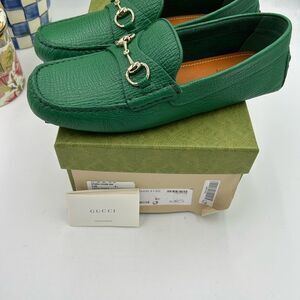Men's Gucci horse bit pebble grain leather driver loafers size 9.5 fits 10.5 US