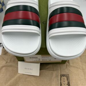 Men's Gucci web striped rubber Pool slides size 11 made in Italy. NEWEST STYLE