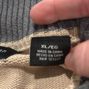 This beige/khaki cotton sweater is in excellent condition ….no pulls or pilling 1/4 zip, inside of neck is a heathered gray