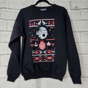 Men's Hanes Black Red Star Wars' Themed Pixel Sweatshirt Size S (34-36)