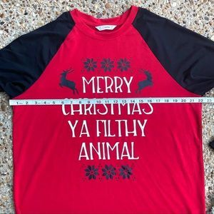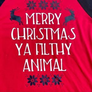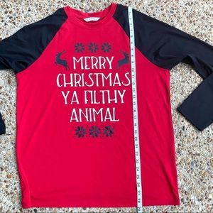NWOT Men’s PatPat Merry Christmas Ya Filthy Animal Jersey long sleeve red and black Shirt