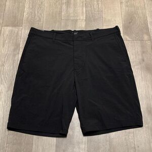 Black color. New with tags. Size 38” and 10.5” inseam. With back zipper pockets.