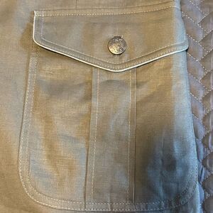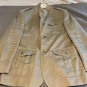 Fully lined exceptional detail at buttons, shoulder, multiple pockets, inside and outside jacket very well-made. Excellent preowned condition.