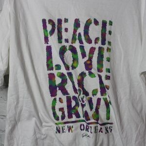- Print says, "PEACE RICE & GRAVY NEW ORLEANS"