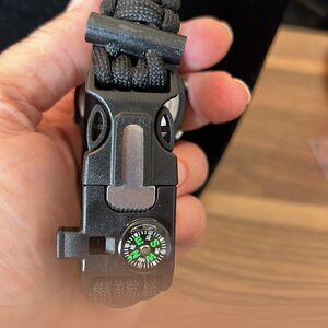 Multi-function watch with parachute cord, compass and cutting tool