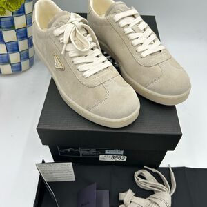 Men's Prada triangle logo suede sneakers size 8.5 US made in Italy